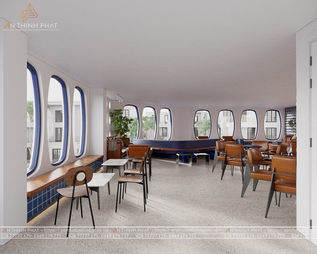 Logo Damia CoffeeMở rộng không gian là một trong những ưu điểm hàng đầu của phong cách Minimalism. Với nguyên tắc tối giản mọi yếu tố dư thừa sẽ mở ra cho quán cafe của bạn nhiều không gian hơn.Các tông màu đậm như màu xanh khi được kết hợp cùng các sắc thái trung tính, hay còn được gọi là “điểm nhấn” trong thiết kế nội thất sẽ càng khiến không gian thêm phần ấn tượng.Tận dụng ánh sáng cũng là một phần quan trọng trong phong cách thiết kế này, đặc biệt là với ánh sáng tự nhiên sẽ càng khiến không gian thêm phần thoáng đãng và rộng rãi.DAMIA coffee với thiết kế hiện đại, thu hút khách giới trẻ và văn phòngSử dụng gam màu xanh đậm làm chủ đạo, sử dụng chất liệu kim loại và bọc nệm nội thất làm tôn lên nét đẹp vừa mềm mại vừa tinh tế của sự tối giản, tạo ra một không gian ấm áp và gần gũi cho quán.Vừa tận dụng nguồn ánh sáng tự nhiên vừa bố trí bàn sát cửa sổ giúp tối ưu hóa được không gian phục vụ khách hàng vừa đảm bảo tính riêng tư nhất định, vừa thu hút được một lượng lớn khách thích ngắm phong cảnh.ATP bố trí những dãy bàn Sofa đơn và đôi với gam màu trung tính tạo cảm giác trang trọng, ấm áp và êm ái.Chiếc sofa với gam màu nổi bật phía sau là logo quán thích hợp cho những ai muốn chụp hình checkinBố trí một vài tiểu cảnh và hiệu ứng ánh sáng làm cho không gian thêm phần ấm áp và tránh được sự đơn điệu.Phần quầy sử dụng gạch men tông màu trắng đối lập với màu xanh chủ đạo kết hợp với Menu màu nâu nhạt tạo nên tổng thể bắt mắt .Minimalism cũng đang là phong cách rất được ưa chuộng trong những năm gần đây, hứa hẹn trong tương lai vẫn sẽ tiếp tục phát triển và giúp các chủ quán cà phê thu hút khách hàng hiệu quả.